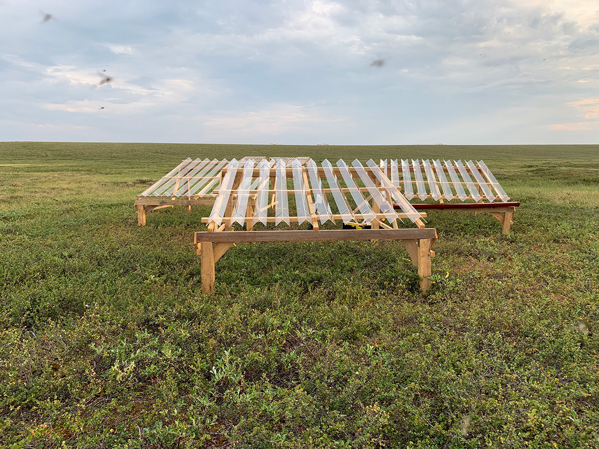 Most climate models predict large increases in temperature and precipitation in the Arctic. What does this mean for tundra vegetation, and how do changes in vegetation in turn affect climate change? In an experiment in the Siberian tundra, we measure how more or less precipitation affects the shape of plants and how this in turn affects permafrost soils. More precipitation means that the plants develop larger leaves. These, in turn, absorb more solar radiation – we therefore expect that permafrost soils will warm up less as a result. Similarly, large leaves evaporate more water than small ones. This may drain more moisture from the soils. Cool and dry conditions in the soil are better for maintaining permafrost.