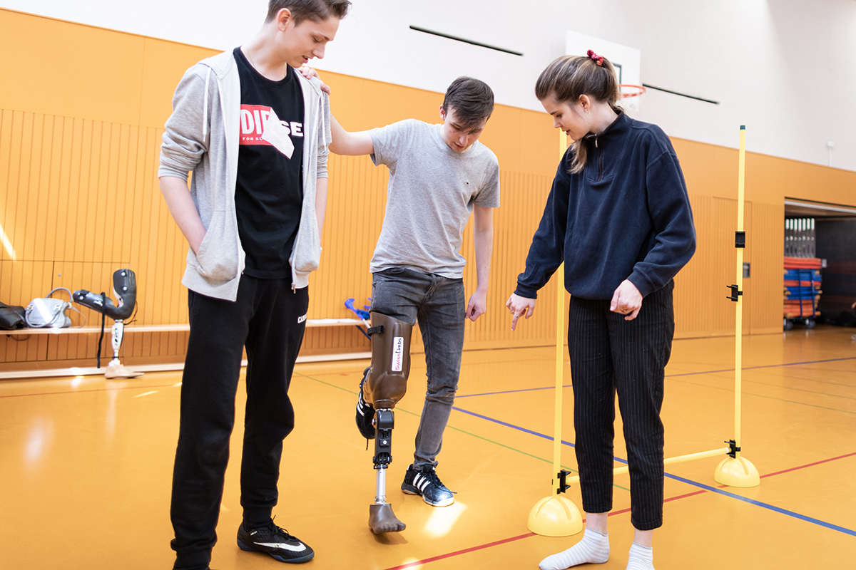 Durch das Gehen mit Beinprothese, das Fahren mit dem Rollstuhl, das Absolvieren eines Blindenparcours oder die Handhabung von Gegenständen mit einer Armprothese werdet ihr ganz neue Bewegungserfahrungen machen. In diesem Workshop werdet ihr nicht nur auf die physischen Barrieren, denen Menschen mit Behinderungen gegenüberstehen, sensibilisiert, sondern euch auch aktiv damit auseinandersetzen und den fliessenden Übergang von künstlich zu natürlich am eigenen Körper erleben.